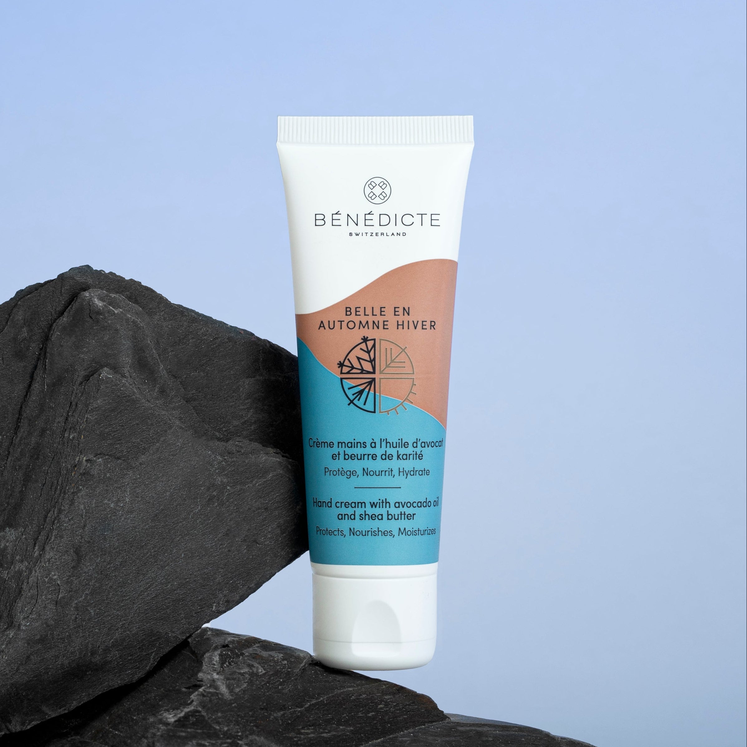 Un soin formulé pour apaiser les mains sèches et abimées par le froid. Enrichi en huile d'avocat, beurre de karité et acide hyaluronique, il nourrit, protège et hydratent vos mains qui retrouvent un confort immédiat.